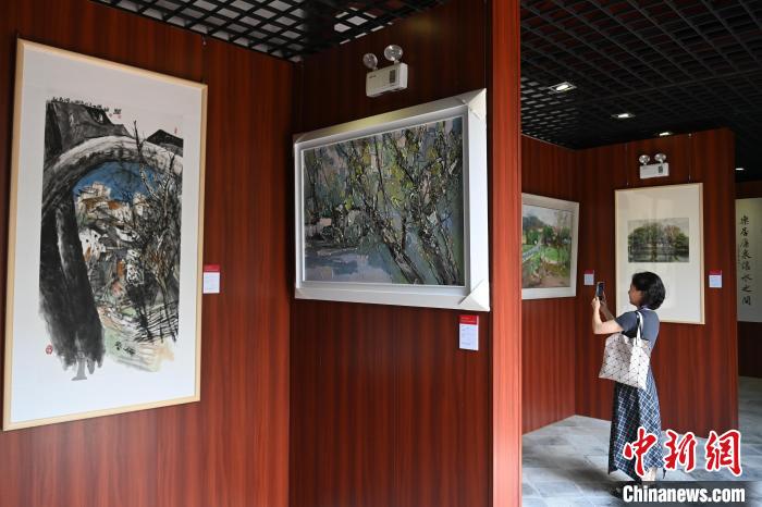 图为在刘铭传故居,游客参观首届“铭传杯”两岸美术书法作品展暨两岸家书展。中新社记者 韩苏原 摄