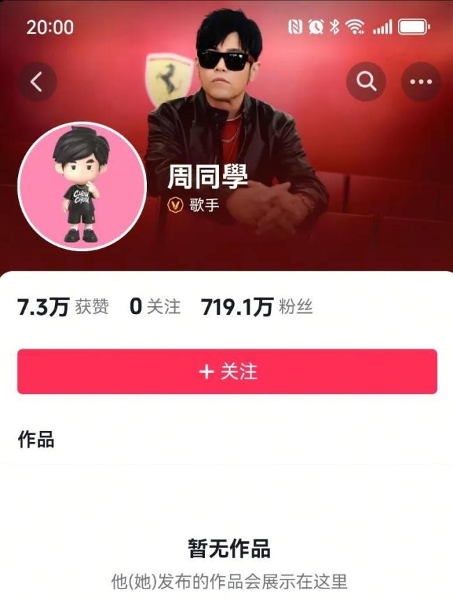 周同學的抖音账号认证为歌手,没有个性签名介绍,未发一条作品。但截至昨日晚8点,该账号粉丝数量已突破700万。