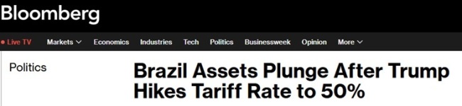 特朗普关税威胁引发巴西资产暴跌 50%关税重击市场信心