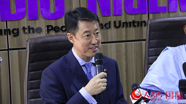 中国驻尼日利亚大使于敦海在“你好!中国”节目启动仪式上致辞。人民网记者 姜宣摄