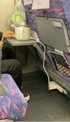 12306回应乘客高铁上用小型电煮锅 严格禁止使用