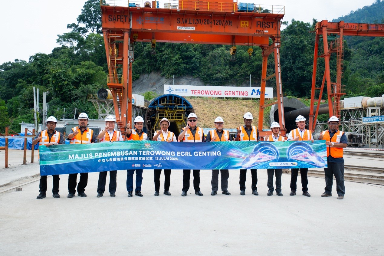 人民网曼谷7月12日电 (记者刘慧)12日,由中国交通建设集团有限公司承建的马来西亚东海岸铁路(马东铁)项目云顶隧道正式贯通,标志着该项目全线41条隧道全部贯通。