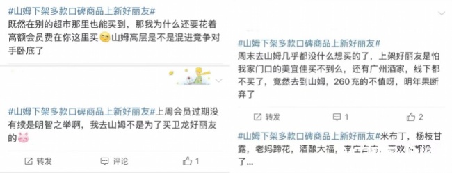 山姆因好丽友派等新品被网友质疑选品标准,引发热议。这场争议源于山姆近期密集的商品调整。社交平台上不少网友吐槽,山姆下架了太阳饼、米布丁、低糖蛋黄酥等回购率高的热门商品,转而上新低糖好丽友派、溜溜梅、徐福记燕麦藜麦蛋糕等“家门口小超市就能买到”的商品。有网友评论称:“米布丁、杨枝甘露、老妈蹄花、酒酿大福,喜欢的都没了。”甚至有人给山姆总部写邮件,希望重新上架自己最爱的特色食品。不少网友表示:“我花钱办卡进会员超市,你却卖我家门口就能买到的东西,把消费者当韭菜。”