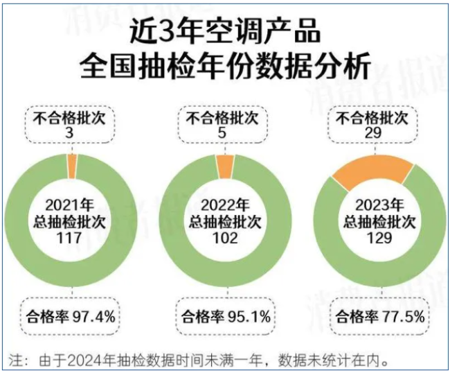 据《消费者报道》根据2021-2023年空调产品全国抽检年份数据分析,随着近年来空调价格不断下探,合格率呈现出逐年降低的趋势。梁振鹏指出,铜作为空调生产的重要原材料近年来价格持续攀升。对于大品牌来说可以通过规模化优势缓解、但部分中小品牌则试图通过不成熟的“以铝代铜”技术来降低成本,导致产品性能及质量下降。