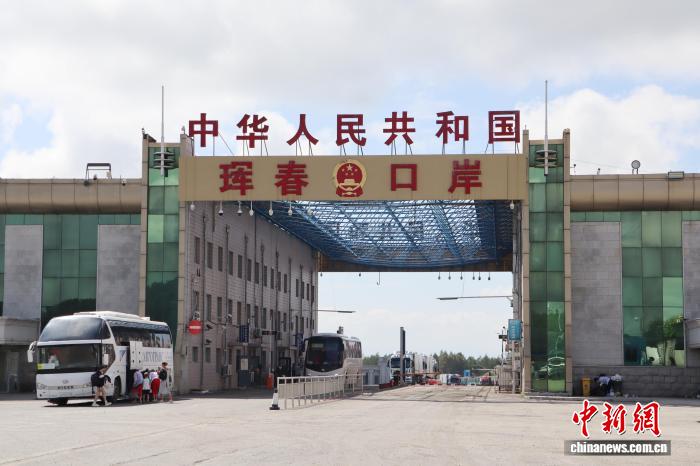 7月19日,吉林珲春,运输帝王蟹的卡车排队入关。中新社记者 蒋文月 摄