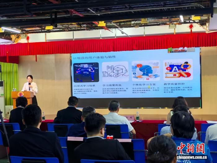 华校校长在论坛上分享了AI赋能华教的前沿实践。郭军 摄