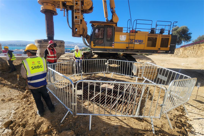 突尼斯比塞大大桥首根永久桩启动钻孔施工。四川路桥供图