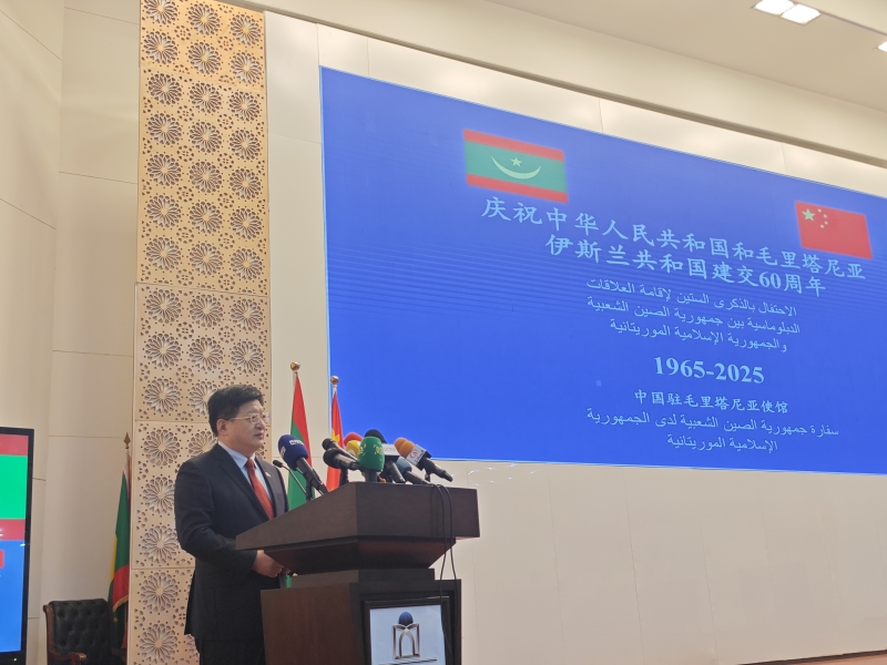 中国驻毛里塔尼亚大使唐中东在活动中发言。 中国驻毛里塔尼亚大使馆供图
