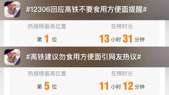 近日,有网友提到高铁车厢内对方便面食用有相关提醒。乘车期间,请不要食用榴莲、方便面等有浓重气味的食品。这一话题迅速冲上热搜并引发热议。