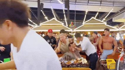 目前,他们因涉嫌在公共场所斗殴等罪名被起诉,涉事者赔偿餐厅10万泰铢(约合426万韩元)后获释。