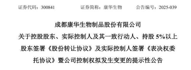 在停牌5个交易日后,康华生物控制权正式完成变更。