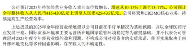 例如在年初时,药明康德(603259.SH)给出过2025年持续经营业务收入增长10%至15%、non-IFRS归母净利率进一步提升的指引。
