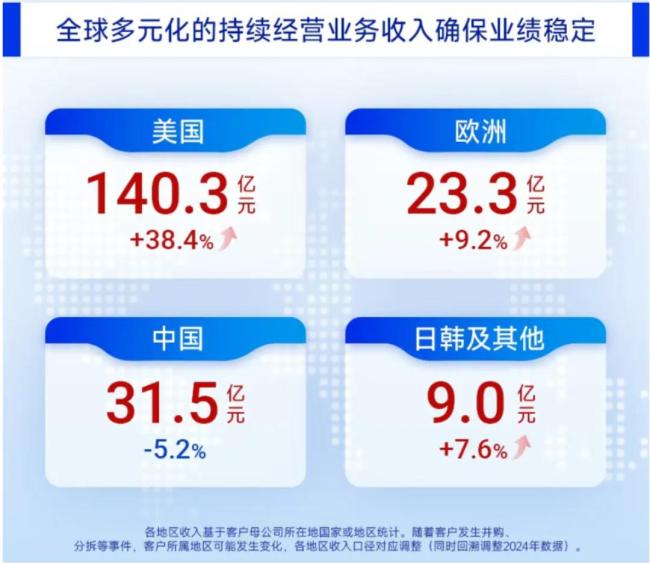 其中来自美国客户收入为140.3亿元,同比增长38.4%,依旧是增长的主要动力。