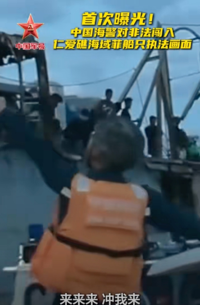 8月1日,中国海警对非法闯入仁爱礁海域的菲船只执法画面首次曝光。驱离现场,中国海警高喊“来来来!冲我来”