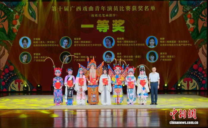 中新网南宁8月4日电(李静)近日,第十届广西戏曲青年演员比赛闭幕式暨颁奖晚会在位于南宁市的广西民族剧院举行。经过四天的激烈角逐,来自广西全区71名青年才俊登台竞技,展现广西戏曲表演人才培养成果;一批功底扎实、潜力无限的新生力量在舞台上脱颖而出。