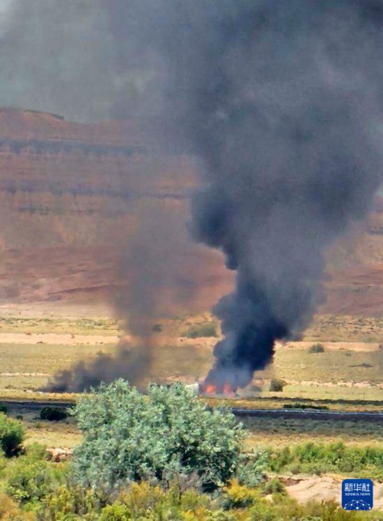 8月5日,在美国亚利桑那州钦利机场附近,坠机现场升起浓烟。新华社/美联
