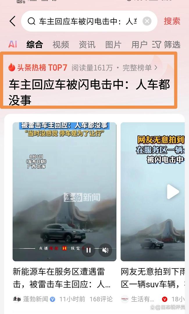 车主回应车被闪电击中:人车没事 淡定面对惊险一刻