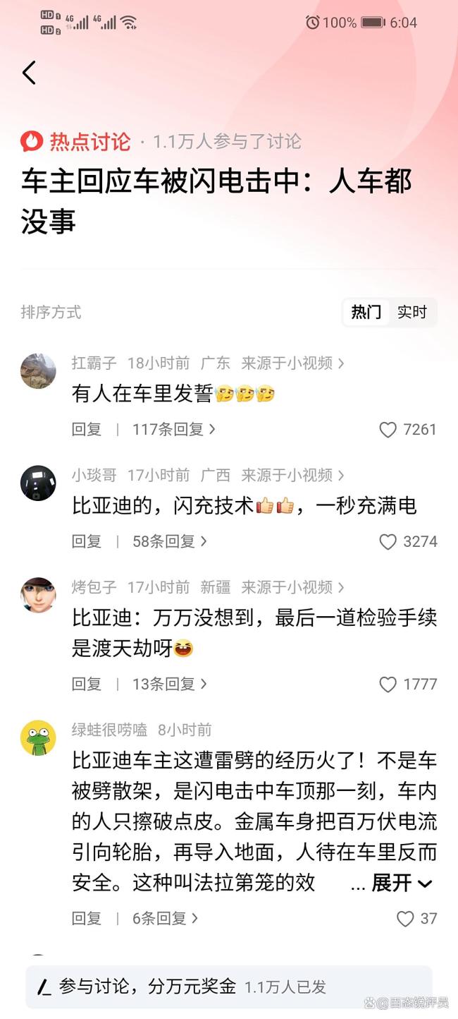 这次事件虽然没有造成严重后果,但也提醒我们在极端天气下开车出行的风险极大。闪电的威力不容小觑,一旦击中汽车,可能导致严重的损害。即使汽车的金属外壳能形成“法拉第笼”效应保护车内人员,但车辆的电子设备和电路系统仍可能受到损坏。因此,在雷雨天尽量避免外出,如果必须开车,务必提前做好防范措施,寻找安全地点躲避雷电。