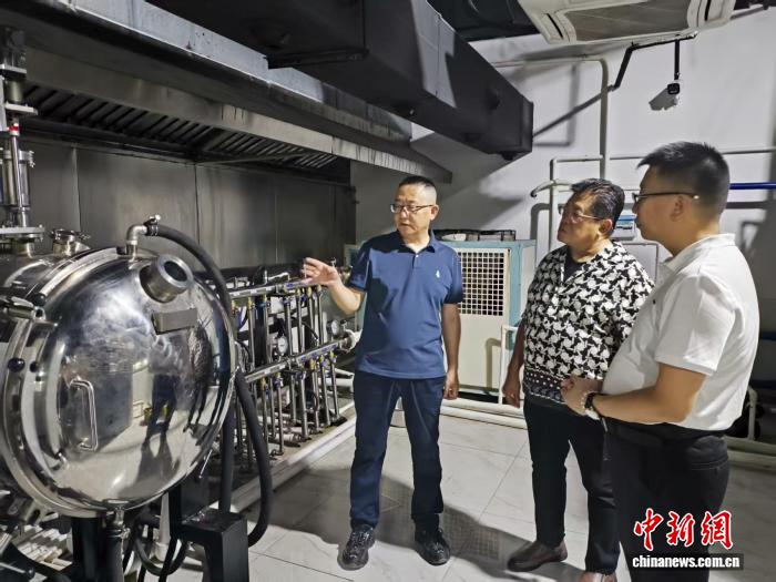 8月7日,菲律宾华商王威廉(中)一行走进海口综合保税区内的安基实业产业园厂房,实地考察投资环境。中新网记者 张茜翼 摄