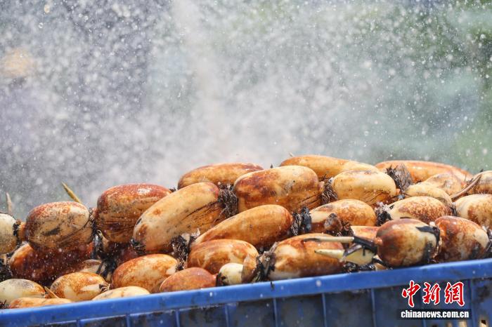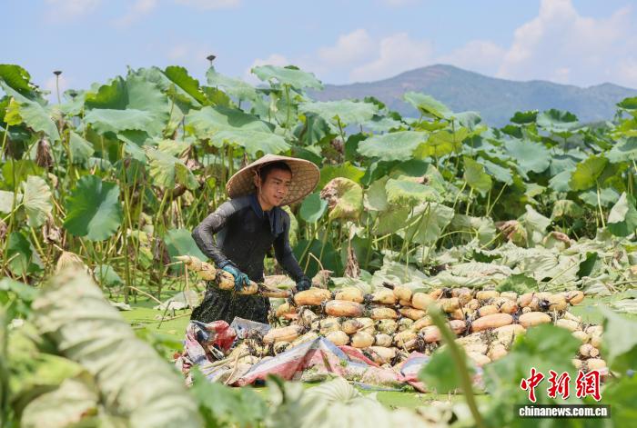 图为采收的莲藕。黎豪图 摄