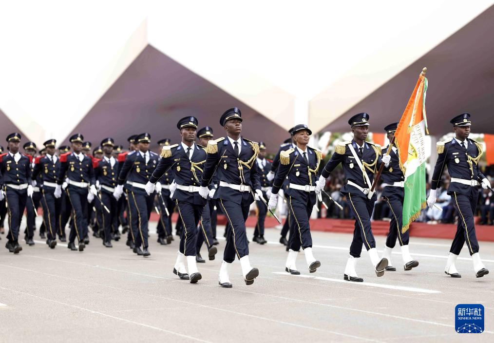 当日,科特迪瓦在中部城市布瓦凯举行独立日阅兵典礼活动,庆祝该国独立65周年。