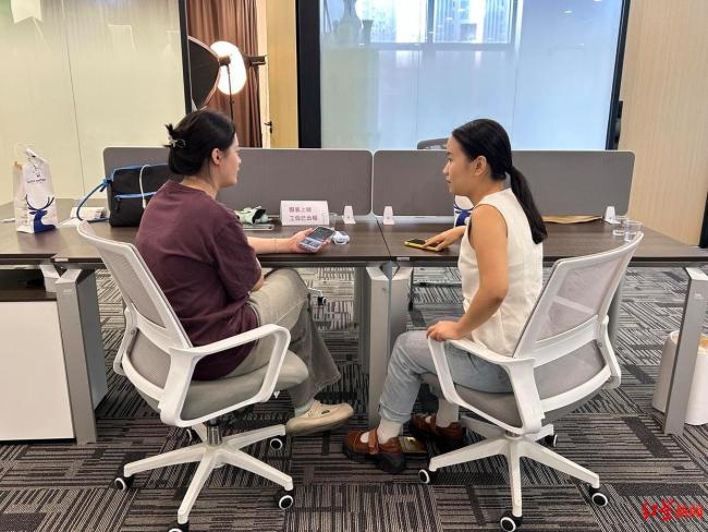戴先生是一位大宗商品贸易从业者,他出于好奇来到这里参加“假装面试”。谢女士是另一位顾客,她因为在家工作感到压抑,决定来这里寻求面对面交流的机会。她在杭州租的房子,平时上午下午各直播3个小时,其余时间做家务。在网上看到这家“假装上班公司”后,她决定尝试一下。小王是一位刚毕业的大学生,学习新闻传媒的她打算在这里拍摄一天的工作体验视频。朱女士则已经在这里工作了半个月,她认为这个地方适合她经营首饰网店。