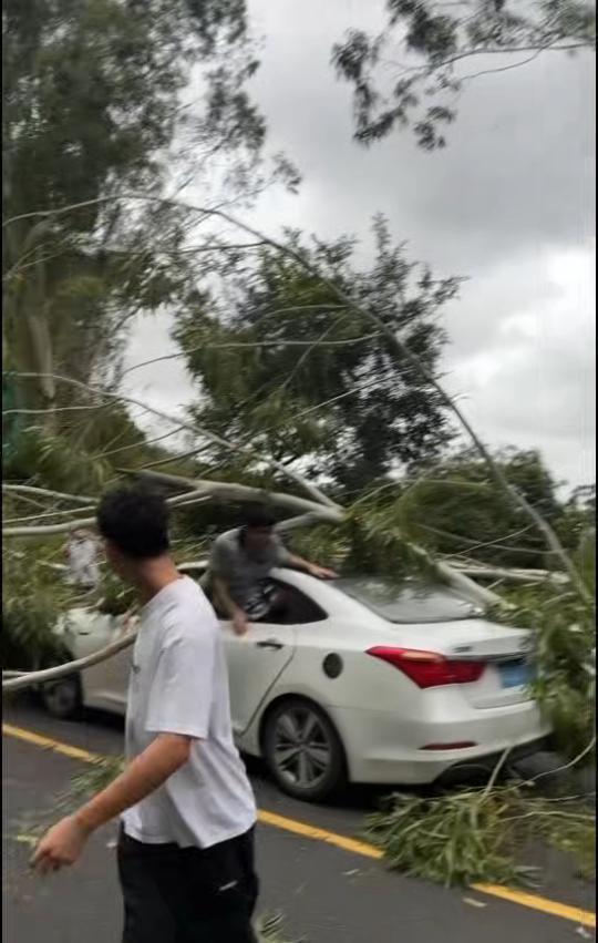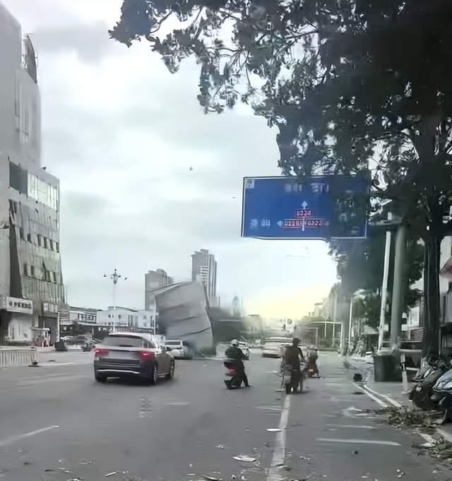 台风杨柳肆虐 车辆被飞落铁皮架砸中 多地险情频发