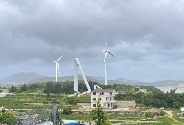 福清市沙埔镇东陈村附近的一处风电设备也被大风吹倒,拦腰折断,坠落的风叶已受损。沙埔镇政府工作人员证实称,已经有人跟进处理。