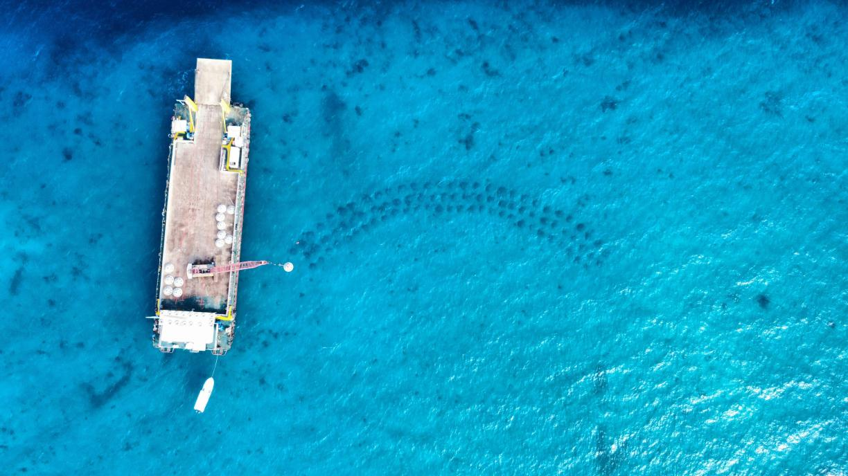 中企在海上安装“珊瑚小屋”。中国港湾供图