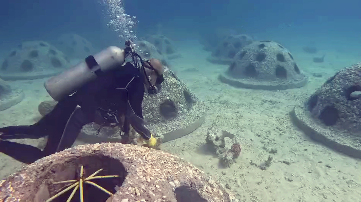 为了保护红海地区的珊瑚礁生态系统,红海全球公司一直会同多方合作伙伴探索珊瑚礁移植和修复方法。中国港湾创新设计的“珊瑚小屋”直径有两米,内部采用环氧树脂增强钢筋骨架,表层用硅酸岩及藻类提取物手工精塑外敷涂层,为珊瑚生长提供了理想基质。开设的“窗户”模拟真实珊瑚礁生态环境,便于海洋生物自由出入小屋。