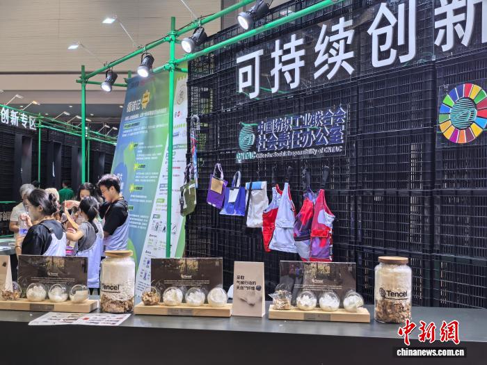 “2025 循环创新·时尚大会”会场外展示了可持续创新产品。中新网记者 陈静摄