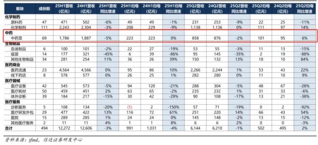 值得关注的是,69家中药企业2025H1总营收约为1786亿元、同比-5%;归母净利润约为223亿元;经营性现金流约169.6亿元、同比+30.77%。整体来看,中药板块收入和利润的降幅较2024年均有所收窄,行业景气度正在逐渐修复中。