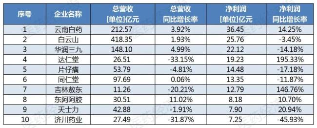 A股69家中药企半年报:白云山、云南白药、华润三九等6家净利润超10亿