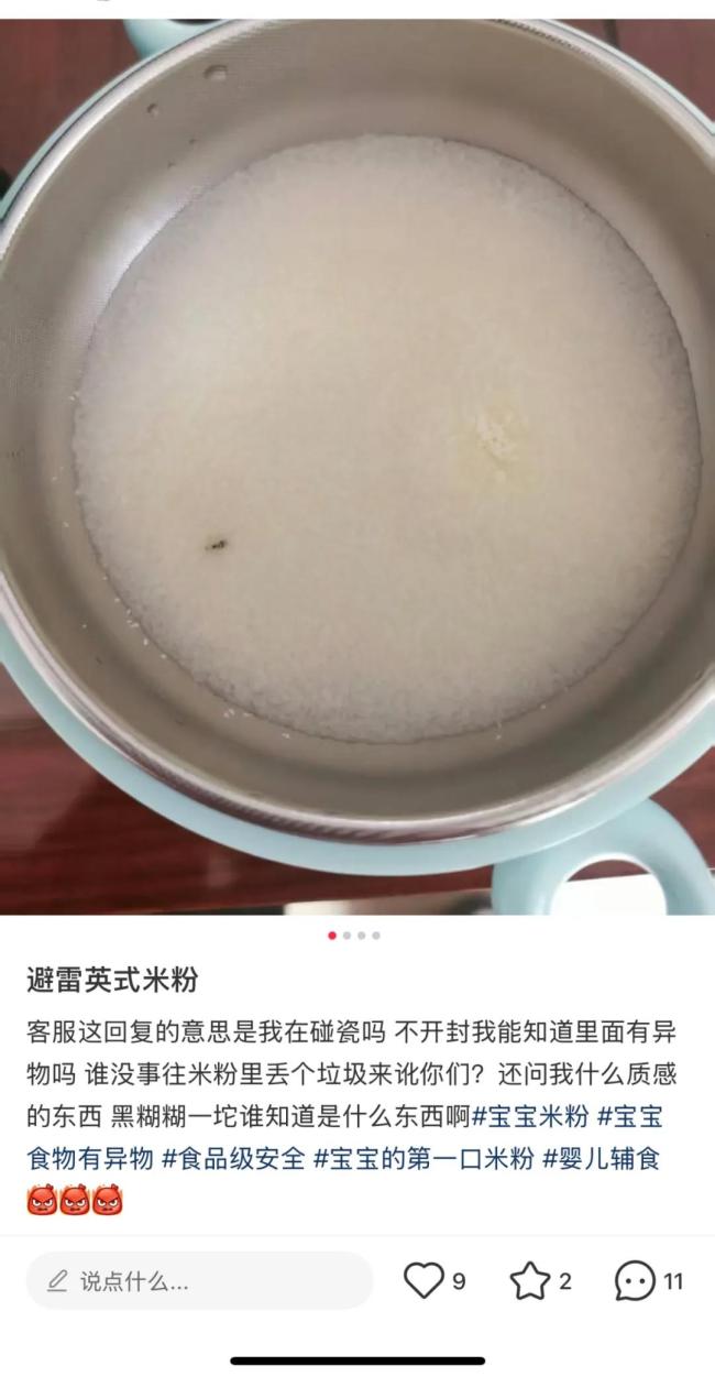 英氏米粉被指频现异物,客服称不确定为何物