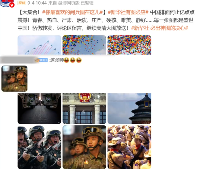 9月3日清晨,新华社微博发布了一组即将受阅的官兵照片,其中东部战区海军某部中士赵鹏因阳光的笑容和明亮的眼神迅速引起网友关注。赵鹏2019年应征入伍,今年首次参加阅兵任务。得知要进行阅兵选拔时,他果断报名,并表示会全力以赴训练。他认为能够参与这一重大任务,接受祖国和人民的检阅,非常光荣和自豪,希望能将最好的一面展现给全国人民。