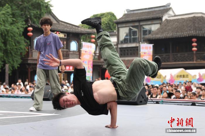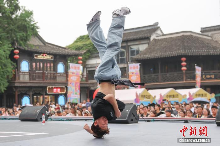 9月14日,2025年中国街舞联赛(南京站)圆满收官,来自全国各地的近400名舞者轮番登台,舞动青春。最终,历经资格赛、循环赛、淘汰赛的层层筛选,王羽凡获得女子公开组冠军,李后桦获得男子公开组冠军。图为选手在舞台上展示舞技。中新社记者 泱波 摄