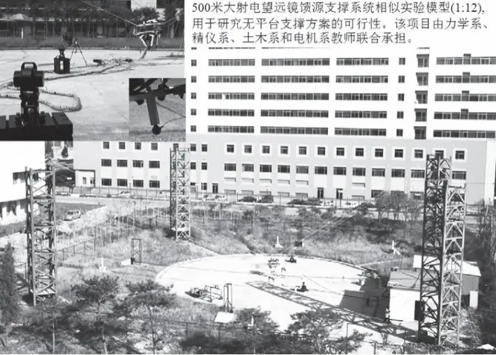 位于清华大学内的500米大射电望远镜馈源支撑系统相似实验模型(1∶12),项目由力学系、精仪系、土木系和电机系教师联合承担