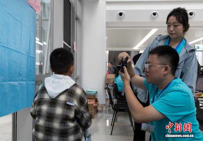 图为工作人员为患儿拍照。中新社记者 杨迪 摄