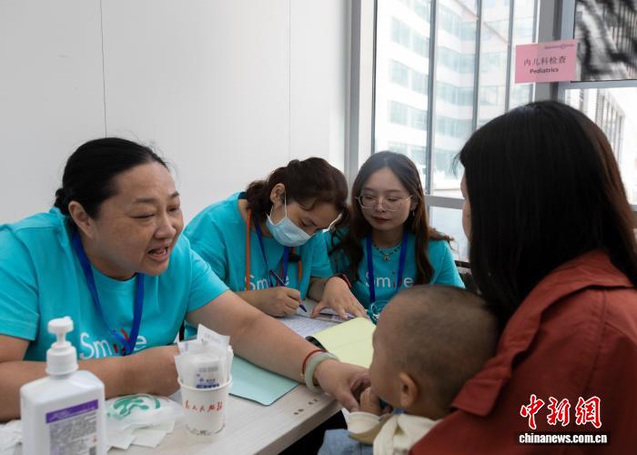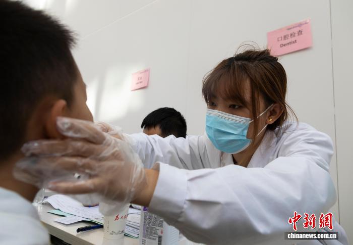 图为专家为患儿做口腔检查。中新社记者 杨迪 摄
