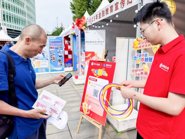 为增强金融安全知识传播的趣味性与吸引力,网银在线创新设计“套圈游戏+金融安全知识问答”互动环节。活动现场参与者热情高涨。这种寓教于乐的形式,大幅提升活动参与度,让参与者在轻松氛围中主动学习金融知识,既化解了金融知识的枯燥感,又提高传播效率,实现“在玩中学、在学中护”。此外,网银在线还在现场发放精心编制的金融安全宣传手册。手册涵盖金融安全基本概念、常见风险类型及具体防范措施,为公众提供实用便捷的金融安全指南,进一步巩固活动教育成果,让金融安全知识持续为公众金融生活保驾护航。