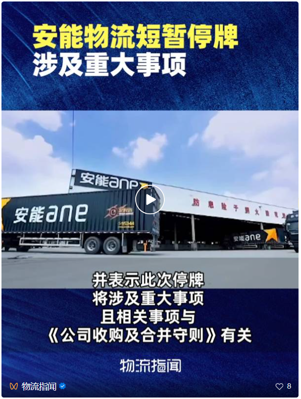 9月18日,安能物流发布短暂停牌公告。公告显示,安能物流集团有限公司的股份于2025年9月18日上午9时起在香港联合交易所短暂停止买卖,以待根据公司收购及合并守则发出载有本公司内幕消息的公告。