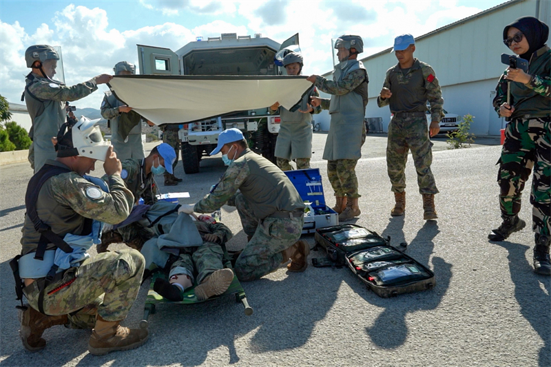 人民网开罗9月21日电 (记者薛丹)近日,中国第23批赴黎巴嫩维和部队多功能工兵分队成功参与由联黎部队组织的“天使救援—2025”系列演习。此次演习以模拟执行人道主义扫雷过程中,地雷爆炸致作业手重伤为背景,旨在提升维和部队在复杂环境下的应急处置与医疗后送能力,检验多国维和部队协同行动效能。