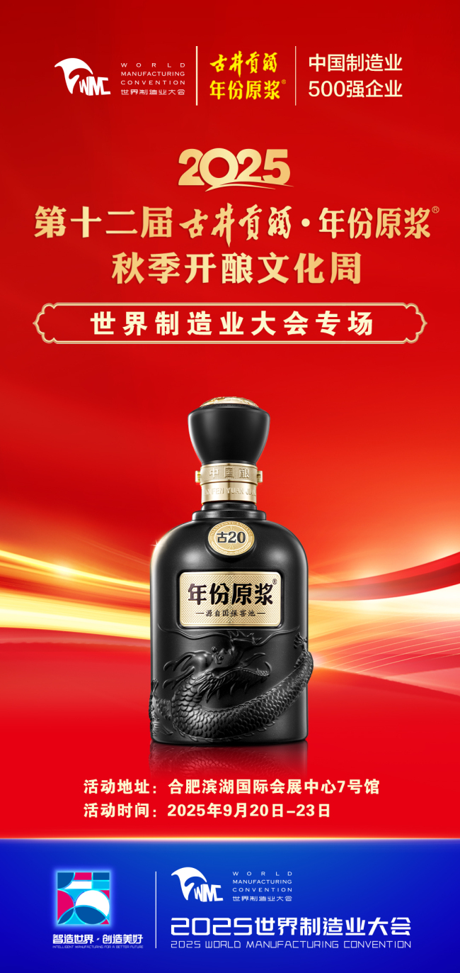 9月20日至23日,小古在2025第十二届古井贡酒·年份原浆秋季开酿美酒文化周世界制造业大会专场等你来打卡,我们不见不散!