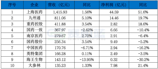 医药商业行业头部企业营收规模显著,市场集中度较高,但企业间成长性分化明显。上海医药以超1400亿元的营收居于首位,同比增长1.56%,归母净利润大幅增长50%,盈利能力突出。九州通和重药控股分别位列第二、三位,营收均实现个位数增长,净利润增速接近20%,显著高于行业其他企业。另一方面,部分企业如国药一致、中国医药和海王生物等,出现营收与净利润双双下滑的局面。