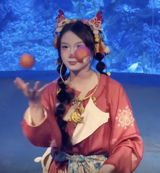 00后女生海洋馆抛苹果边抛边啃。近日,广东广州。“00后”女生自学手技杂耍,在海洋馆表演“边抛苹果边吃”,赢得全场喝彩!网友:不愧是“00后”!