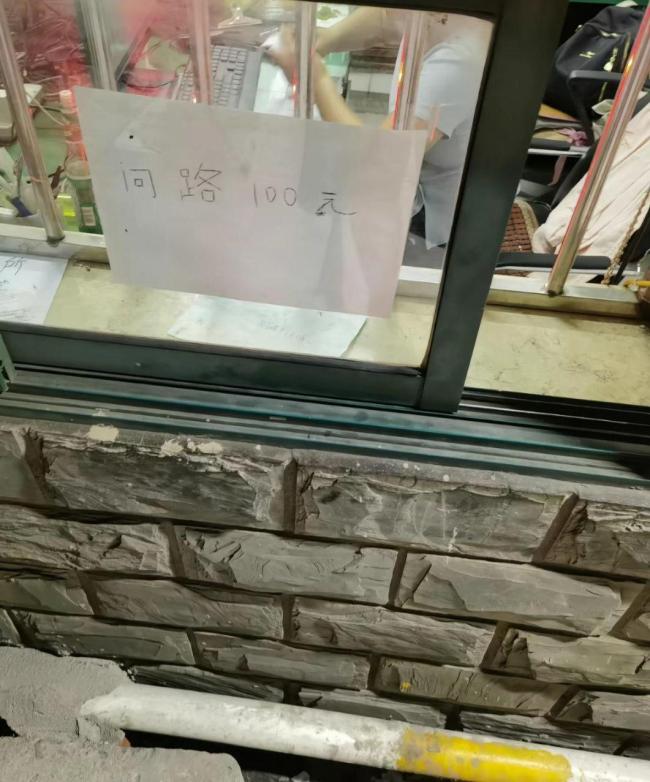 近日,一名货运司机在某短视频平台分享了上海市铁山路28号的海行堆场办事窗口照片。照片显示,该窗口设计低矮,办手续的司机需要蹲下,并且张贴了一张“问路100元”的标语。