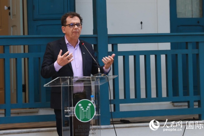 里约植物园园长塞尔吉奥·维亚纳发表致辞。人民网记者宋亦然摄