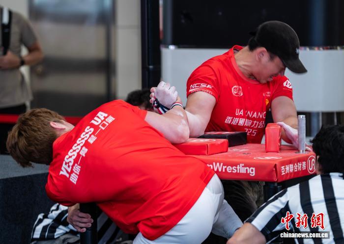 图为两名参赛选手奋力争胜。中新网记者 侯宇 摄
