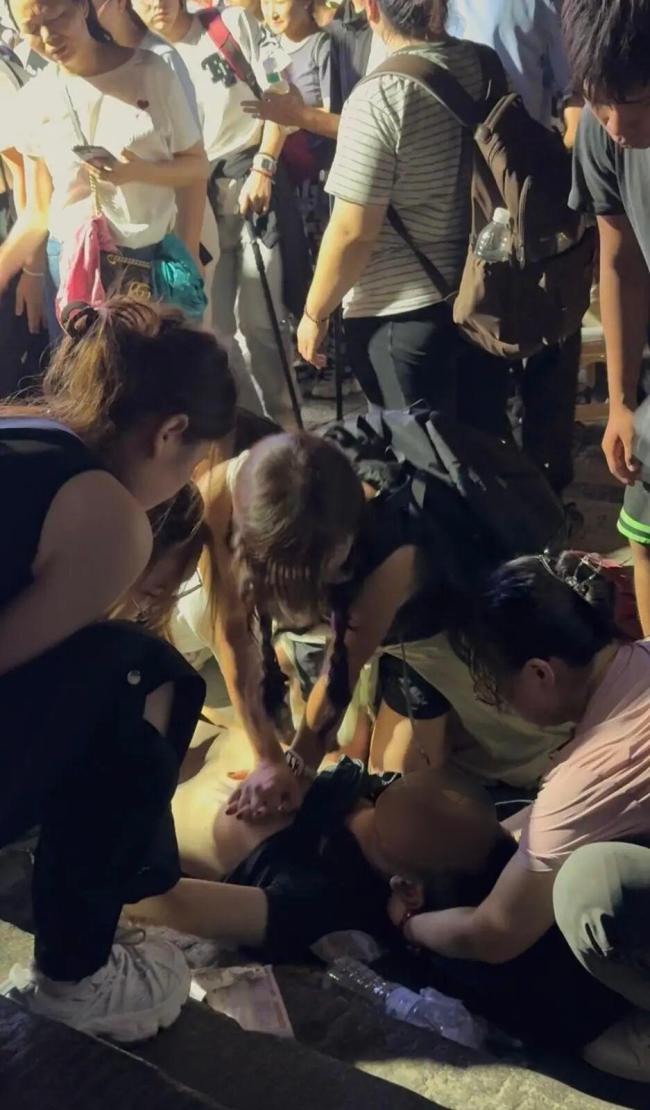 女护士跪石阶抢救心脏骤停游客 生命守护者
