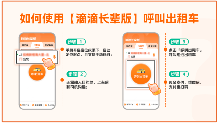 图为:滴滴长辈版呼叫出租车流程图